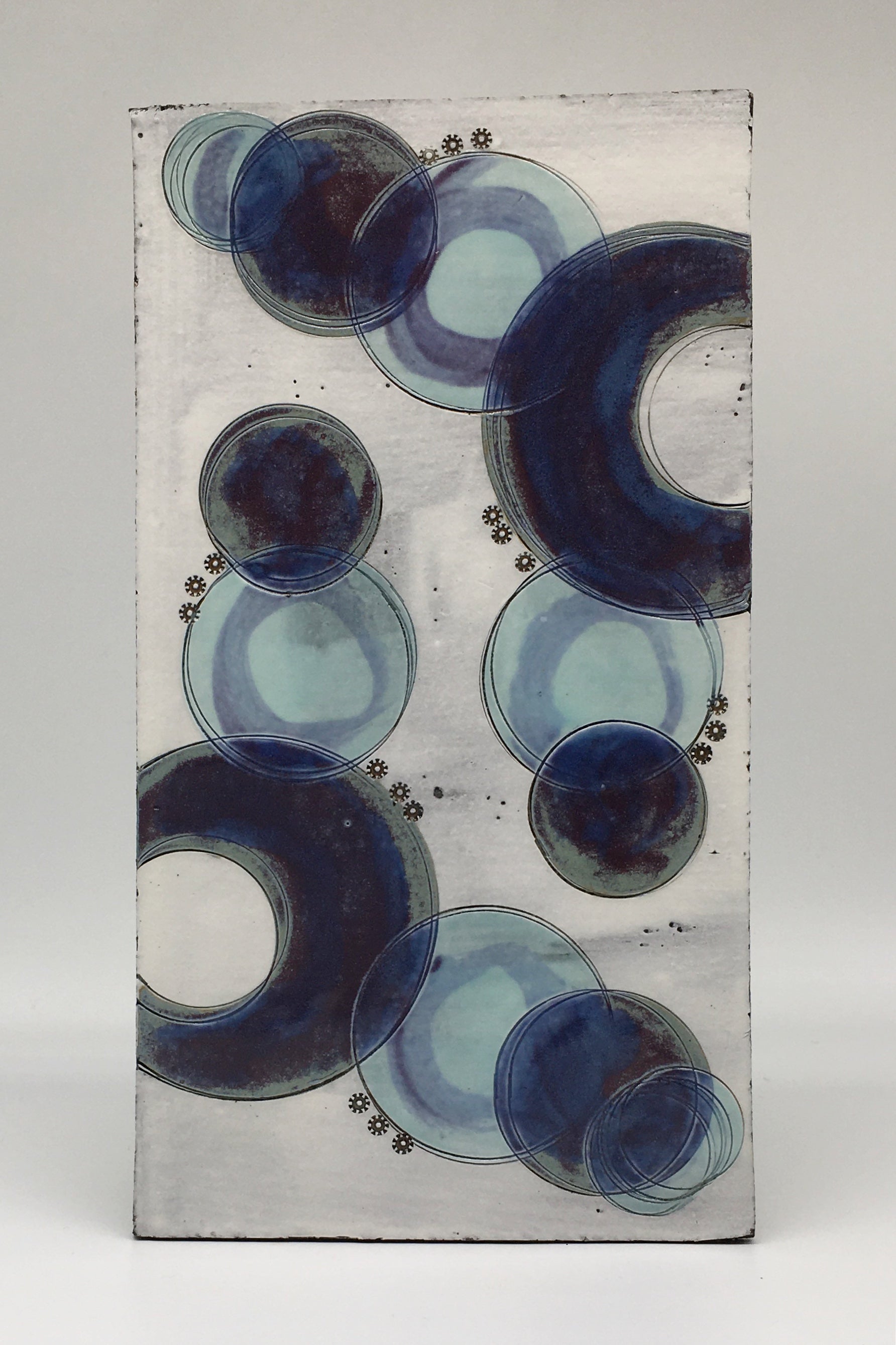 Size GuideAn individually crafted wall piece, created from textured black clay, decorated with slips and glazes over impressed textures. One of a collection of work inspired by the sea, sand and coastline, in the Californian winter sunshine. The piece is fired...
