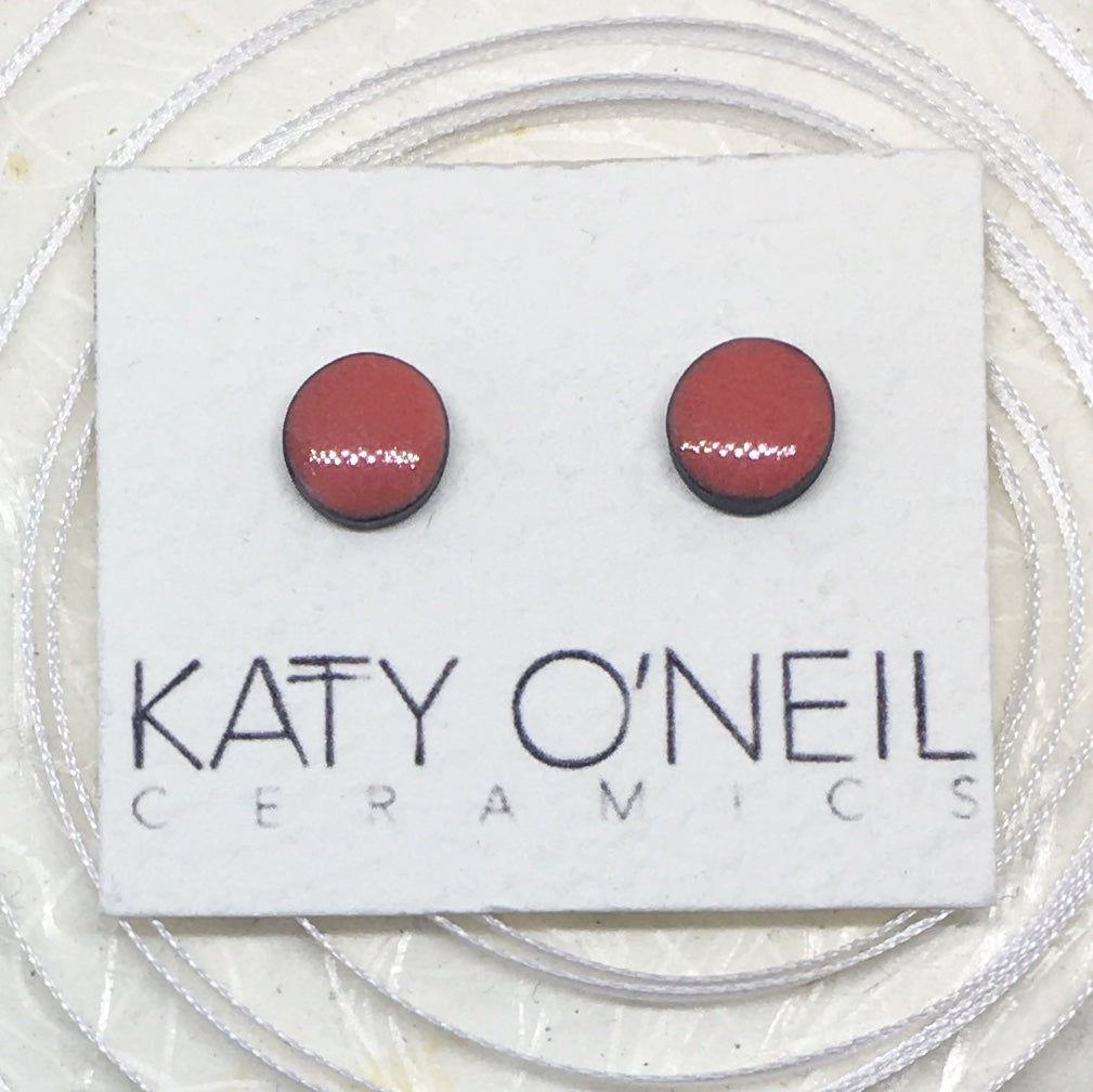 Size GuideHandmade using the finest smooth Black Onyx Porcelain decorated with white porcelain slip and a coral pink glaze before being high fired for durability. Ear posts and scrolls are made from surgical steel and are hypoallergenic - perfect for those...