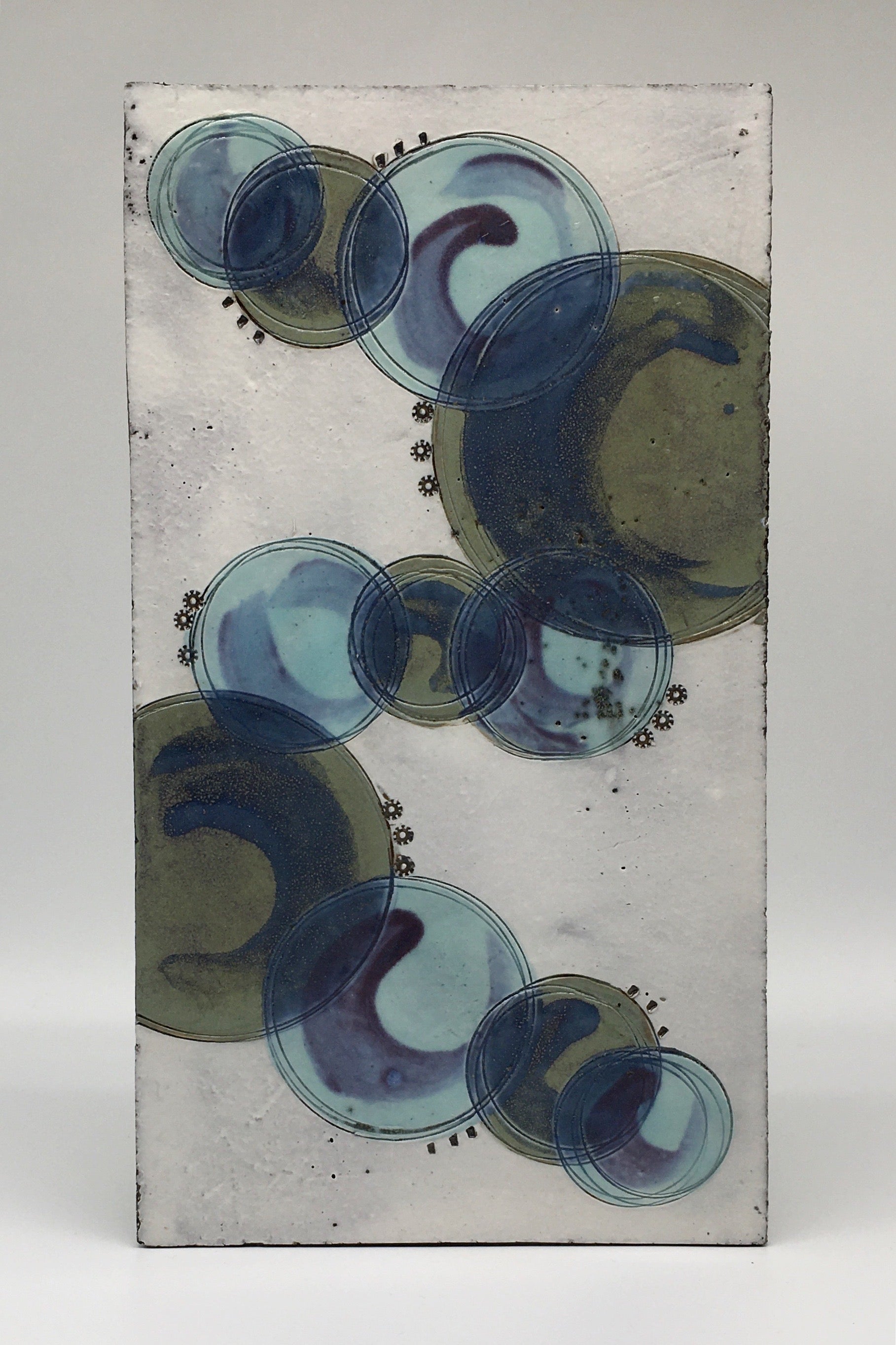 Medium wall plaque - with purple and turquoise circles and grid dots.