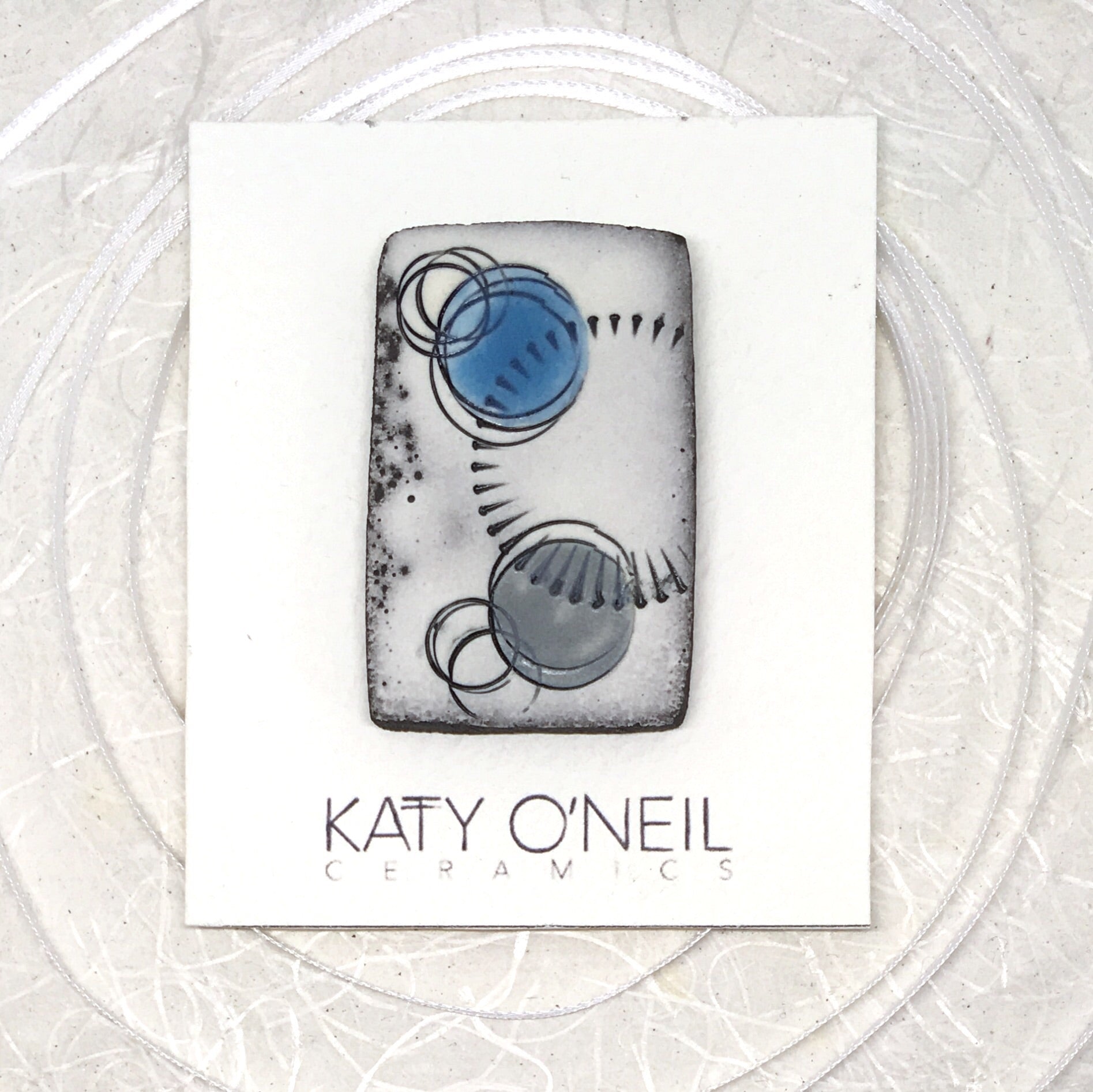 Size GuideThis unique oblong brooch is individually handmade using the finest smooth black textured clay decorated with porcelain slip. The impressed design is glazed with matt black to highlight the textures and with pops of matt grey and bright translucent glacial blue before being high fired for durability.
