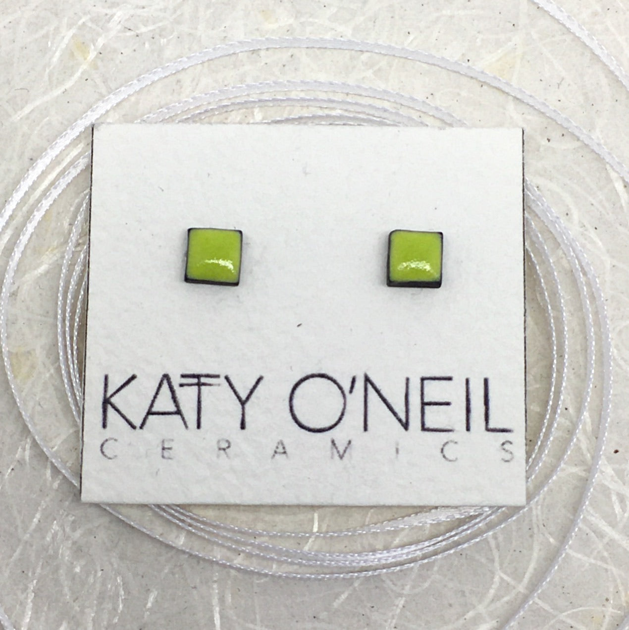 Size GuideHandmade using the finest smooth Black Onyx Porcelain decorated with white porcelain slip and a vibrant bright green glaze before being high fired for durability. Ear posts and scrolls are made from surgical steel and are hypoallergenic - perfect for...