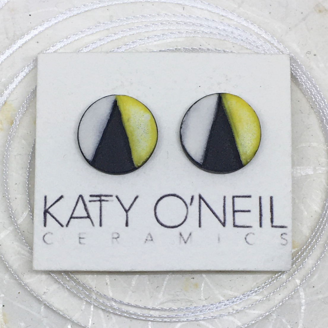 Size GuideHandmade using the finest smooth Black Onyx Porcelain decorated with white porcelain slip before being glazed with a matt yellow glaze before being high fired for durability. Ear posts and scrolls are made from surgical steel and are hypoallergenic - perfect...