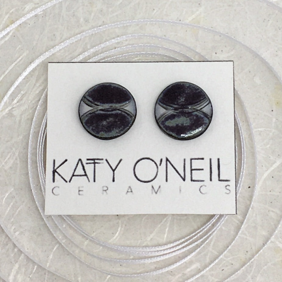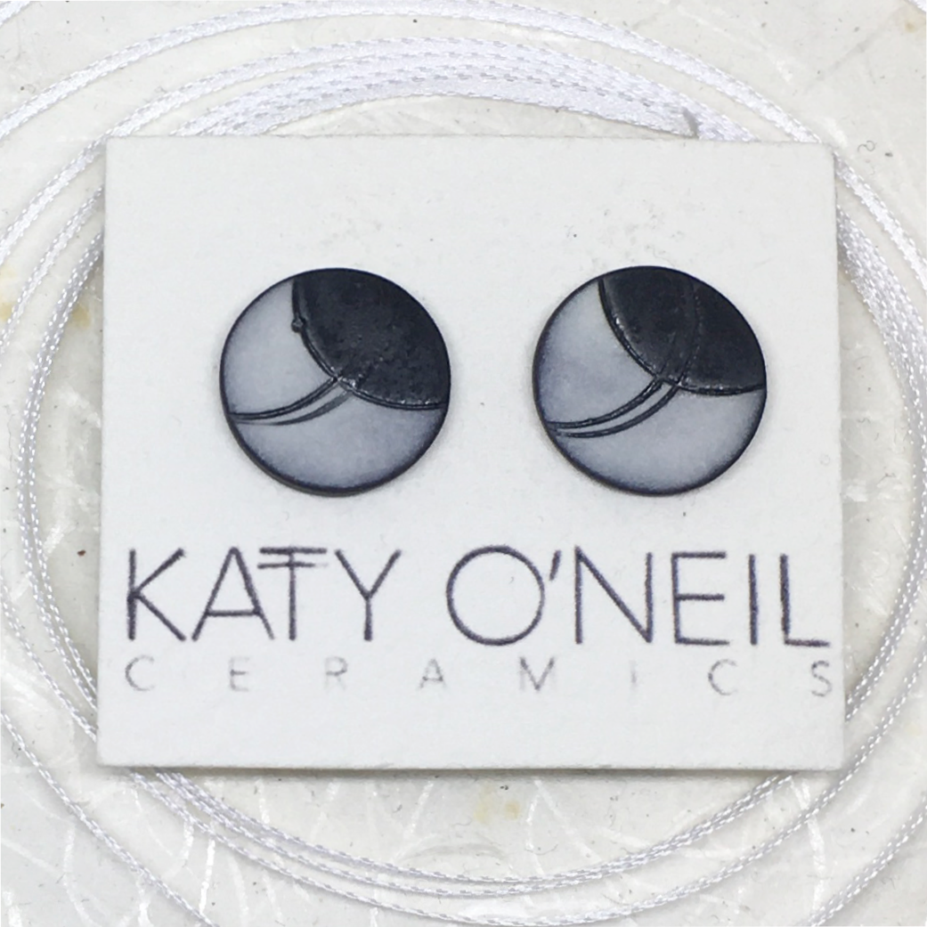Size GuideHandmade using the finest smooth Black Onyx Porcelain decorated with white porcelain slip before being glazed with a grey blue opal glaze before being high fired for durability. Ear posts and scrolls are made from surgical steel and are hypoallergenic -...