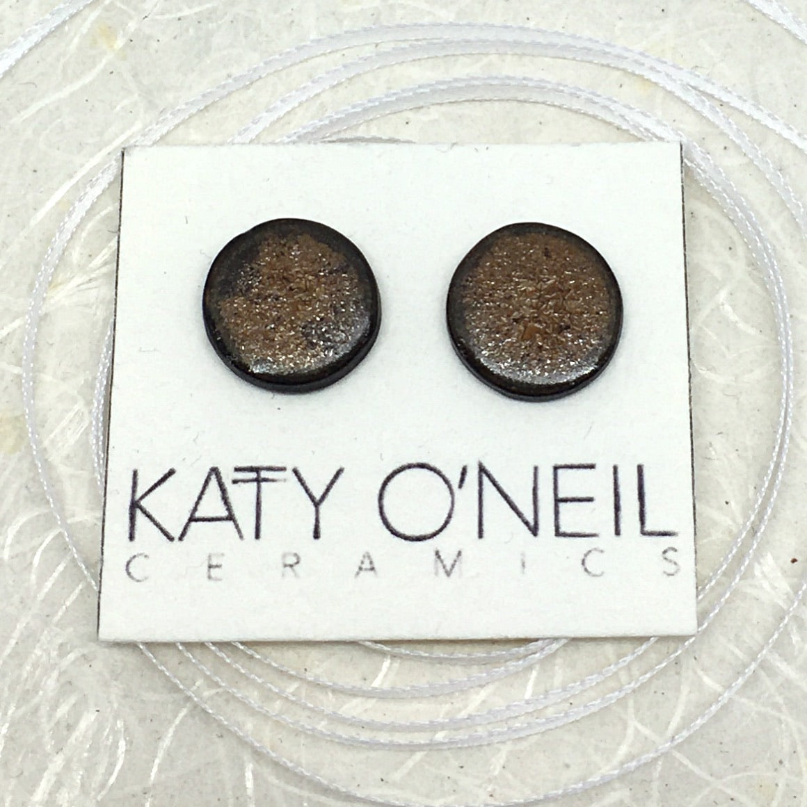 Size GuideHandmade using the finest smooth Black Onyx Porcelain decorated with white porcelain slip before being glazed with a brown orange glaze that sparkles before being high fired for durability. Ear posts and scrolls are made from surgical steel and are hypoallergenic...